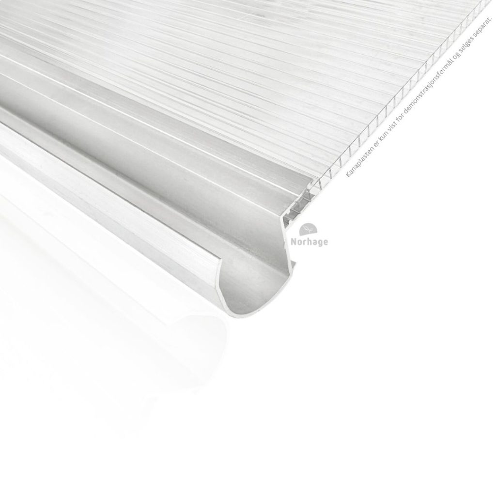 Tyylikäs alumiinikouru hopeanvärisenä 10 mm polykarbonaattilevyille. Tehokas sadevesikouru kasvihuoneeseen. Pituudet: 2,1 m ja 4,2 m.